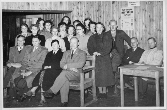 Kuva Hyvinkään Ladun perustavasta kokouksesta, joka pidettiin 13.10.1952 Urheilutuvalla.