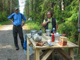 Hyvinkään Ladulla oli ohjelmassa retkeilyyn liittyvien asioiden, eli keittimiin, kantolaitteisiin sekä majoitteisiin kohdistunut esittelytapahtuma. Lisäksi Ikinivelpiiriläiset saapuivat paistamaan tikkupullaa ja osallistuivat samalla tapahtumaan. Helteinen elokuun lauantaipäivä lienee kuitenkin syynä, kun väkeä paikalle saapui vain noin kymmenkunta henkeä. Totesimme kuitenkin kokemusten jakamisen olevan itsekullekkin hyödyllistä. Kuvia tapahtumasta näppäili Heikki Moisio