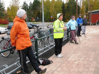 Tiikerinlenkki tutuksi tapahtumissa oli vuorossa Ahdenkallion lenkki. Kokoonnuimme kaupunkisillan uimalan montulle. Vetäjämme Kaarina Moisio perehdytti aluksi väkeä Ahdekallion kuntosalilin laitteisiin. Tällä salillahan seinät ovat leveällä ja katto korkealla, eikä hienhajukaan varmaan ketään häiritse. Maauimalan viereisessä puistikossa on ryhmä hiukan perinteisistä kuntosalilaitteista eroavia kuntolaitteita, joita jokainen ulkoilija voi vapaasti käyttää. Kiersimme tämän alkujumpan jälkeen kävellen Tanssikallion - Ahdekallion lenkin ihastellen syksyisen ruskan värejä.