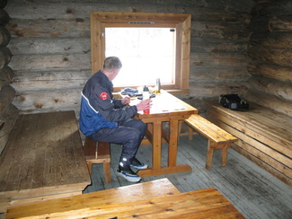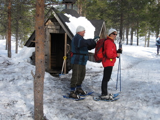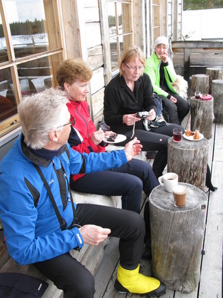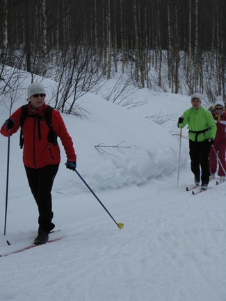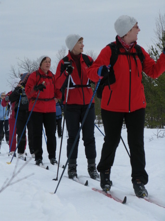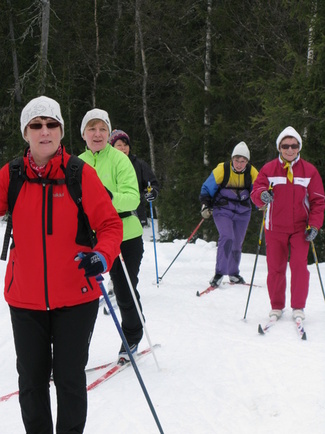 Sunnuntaiaamuna kokoonnuimme yhteiskuvaan lähtiessämme hiihtolenkille. Kuvassa vasemmalta oikealle: Iiris, Kristiina, Valma, Riitta-Liisa, Kalevi, Hilkka, Seija, Raita, Kaarina, Pirjo. Marja-Liisa ja Lauri. Kuvata puutuvat Hessu, Pertti sekä kameran takana ollut Timo.