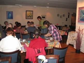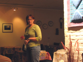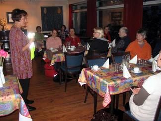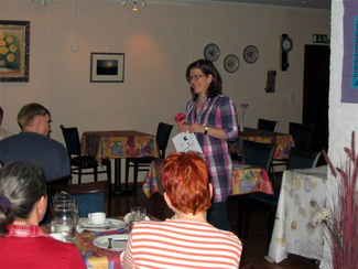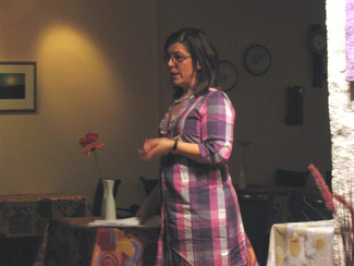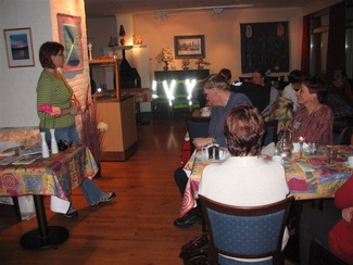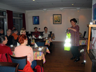 Kaarina esitteli uusia turvaliivejä, joita ulkoiluttajat sekä muutkin latulaiset voivat erilaisissa Hyvinkään Ladun joukkotilaisuuksissa pitää päällään.