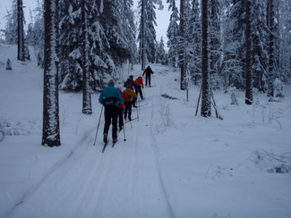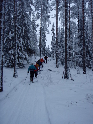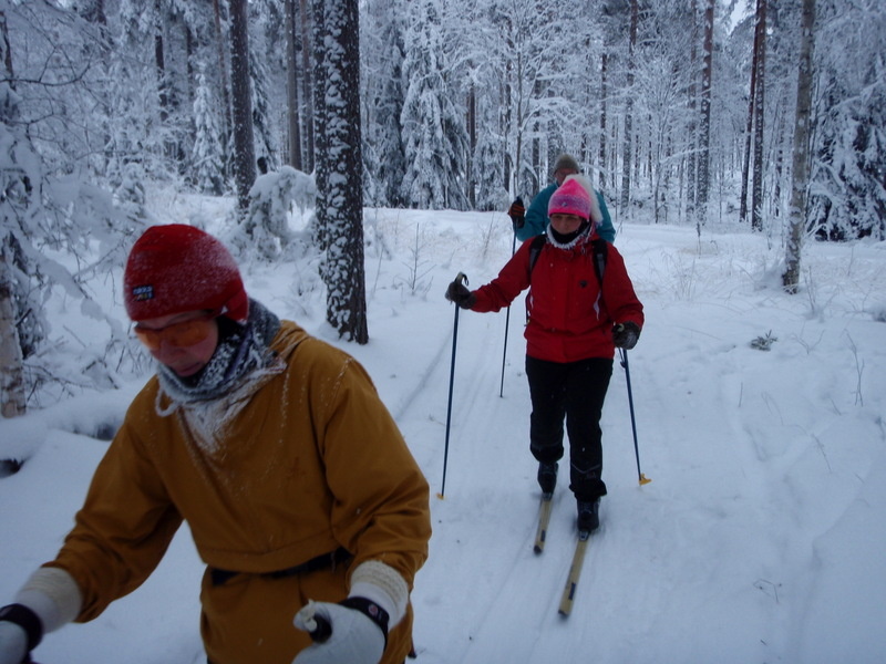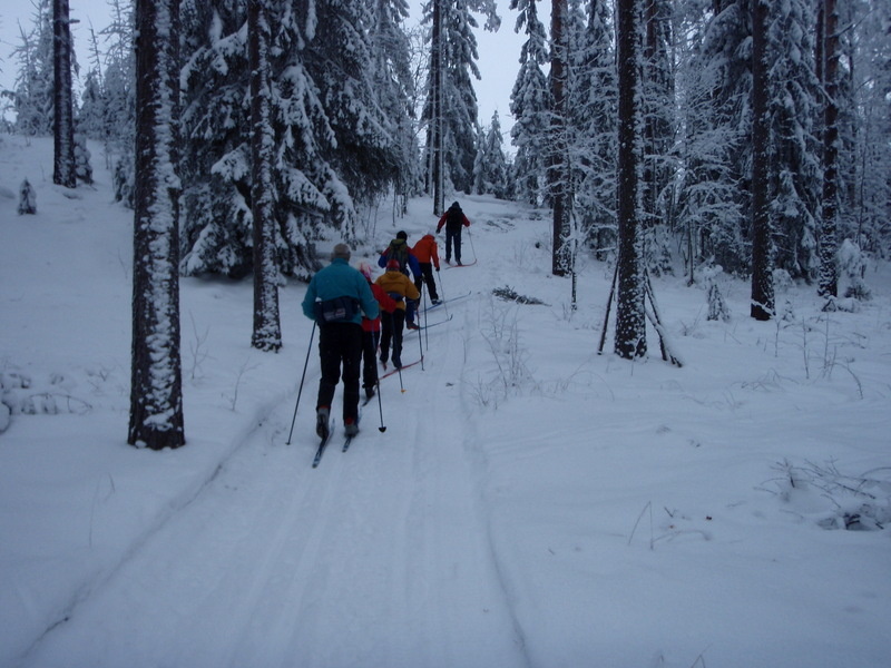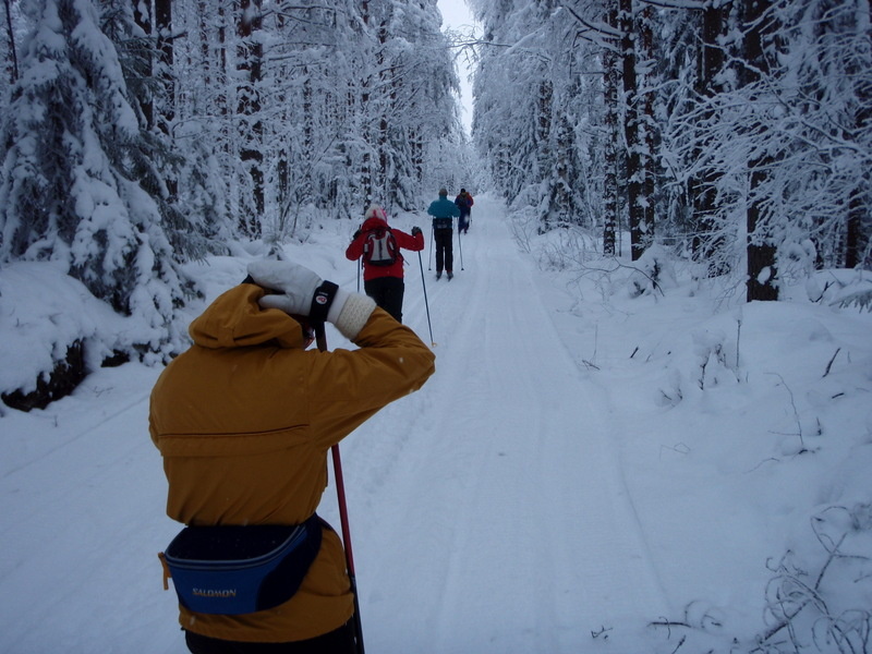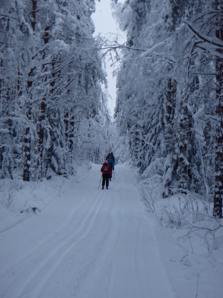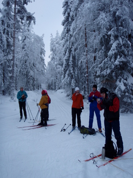 Hyvinkään Ladun perinteinen laturetki Riihimäen Kiistaveikkojen majalle suksittiin tällä kertaa kipakassa pakkassäässä. Lähtöpaikalla asteita oli parisenkymmentä, Erkylässä enää 19 ja Suonummella vaivaiset 15. Suksen luistossakin oli paluumatkalla huomattavissa petrausta. Matkan aikana sateli ajoittain kevyesti lunta, mutta aurinkoa emme tällä kertaa onnistuneet pongaamaan. Maastossa ihastelimme tykkylumisia havupuita, jotka saivat suksijan mielikuvat siirtymään jo pohjoisen hangille...
