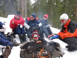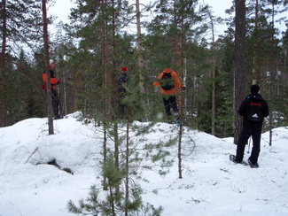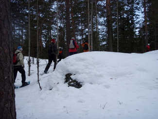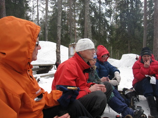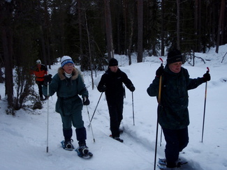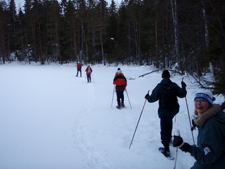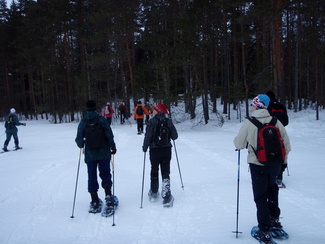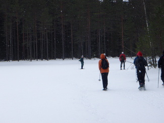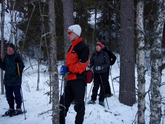 Kauden toinen Hyvinkään Ladun Lumikenkäretki käveltiin pikkupakkasessa ja kevyen lumisateen silloin tällöin meitä ilahduttaessa. Maastossa ei siis hirveästi ollut vielä kevään merkkejä näkyvillä päivämäärästä huolimatta. Retken puheenaiheeksi nousi tavan takaa nivelet ja ylipäätään liikkuminen varttuneemmalla iällä. Joukossamme mukana kulki Tarja, joka mainosti saaneensa uudet 'rautapolvet' vain kaksi kuukautta aiemmin ja pärjäävänsä meidän joukossamme vallan mainiosti. Ja näin kävikin ilmeiseksi sillä niin ripeästi hän selvitti joukossamme Usmin lukuisat nousut ja laskut. Tarjan viesti kaikille kohtalotovereille olikin Tarvan malliin, että eikun ylös, ulos ja lenkille...