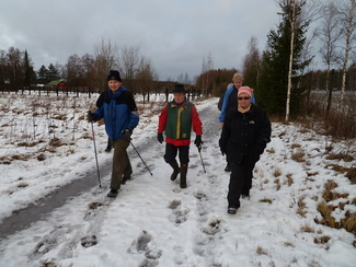 Seitsemän latulaista unohtivat hetkeksi joulukiireensä, ja lähtivät nauttimaan rapsakasta alkutalven kelistä, joka tuntui jokaisesta varsin mukavalta edellisen päivän sateiden jälkeen. Kävelimme Kalevin johdolla Hyyppärän peltojen poikki 'vanhalle aurinkoladulle' ja edelleen Latu-Miiluun, jossa nautimme edellisen päivän pikkujoulusta jäänyttä riisipuuroa sekametelisopan kera sekä päälle vielä torttukahvit. Paluumatkalla kuljimme vielä avoimen Vantaan vartta, jolla osuudella aurinkokin meille toviksi näyttäytyi.