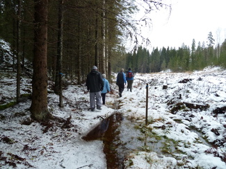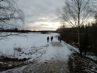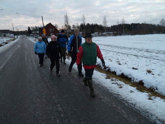 Seitsemän latulaista unohtivat hetkeksi joulukiireensä, ja lähtivät nauttimaan rapsakasta alkutalven kelistä, joka tuntui jokaisesta varsin mukavalta edellisen päivän sateiden jälkeen. Kävelimme Kalevin johdolla Hyyppärän peltojen poikki 'vanhalle aurinkoladulle' ja edelleen Latu-Miiluun, jossa nautimme edellisen päivän pikkujoulusta jäänyttä riisipuuroa sekametelisopan kera sekä päälle vielä torttukahvit. Paluumatkalla kuljimme vielä avoimen Vantaan vartta, jolla osuudella aurinkokin meille toviksi näyttäytyi.