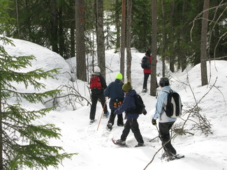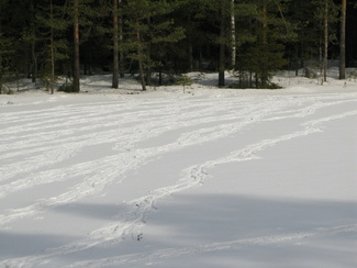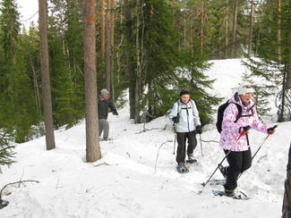 Maaliskuun viimeisenä sunnuntaina kellot siirrettiin kesäaikaan. Hyvinkäällä ei vielä ollut kesä koittanut, vaan ympäristö on varsin talvisen oloinen. Lähdimme aamulla yhdeksän aikoihin Usmin maastoon lumikenkäilemään. Säätila oli mitä parhain ja pikku.pakkasessa puolimetrisen hangen pinta kantoi mainiosti. Ohessa Timo Tuomaisen otoksia matkalta.