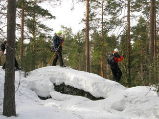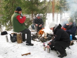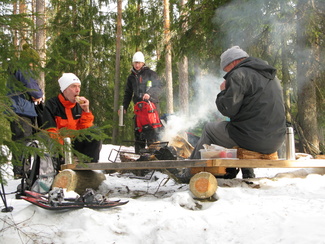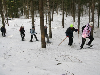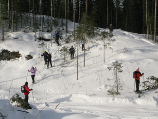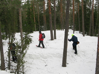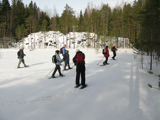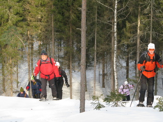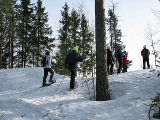 Maaliskuun viimeisenä sunnuntaina kellot siirrettiin kesäaikaan. Hyvinkäällä ei vielä ollut kesä koittanut, vaan ympäristö on varsin talvisen oloinen. Lähdimme aamulla yhdeksän aikoihin Usmin maastoon lumikenkäilemään. Säätila oli mitä parhain ja pikku.pakkasessa puolimetrisen hangen pinta kantoi mainiosti. Ohessa Timo Tuomaisen otoksia matkalta.