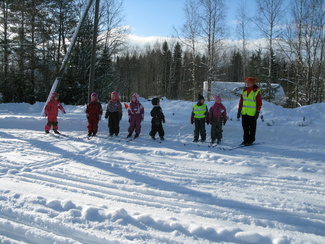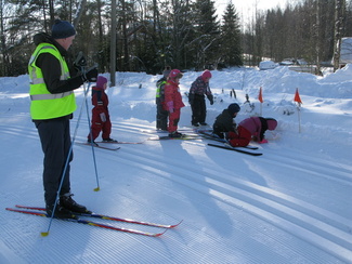 Muumihiihtokoulu pöyrähti taas käyntiin Lehtolan ulkoilumajalla. Yöllä oli satanut vähän lunta, mutta keli oli toki mainio pakkassäästä huolimatta. Oppiin oli imoittautunut 16 lasta, jotka olivat iältään 4-7 vuotta. Ohjaustoimissa häärivät tutut henkilöt aikaisemmilta vuosilta. Onneksi saimme myös muutaman tilapäisapulaisen, sillä tälläkertaa lapsista suuri osa oli niitä nuorempia. Ohessa kuvia ensimmäisen hiihtopäivän tapahtumista. Ohjelmassa oli tutustumisleikin jälkeen mm. kukkasten tekemistä, kaatumisharjoittelua, suksikaruselliä, hirvenhiihtoa, tasapainoharjoittelua, pesänryöstöä ym.