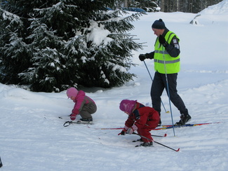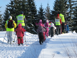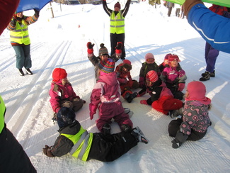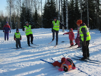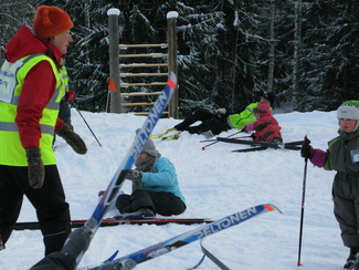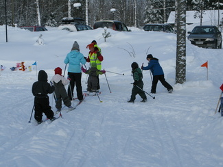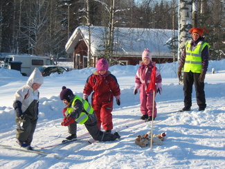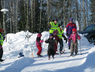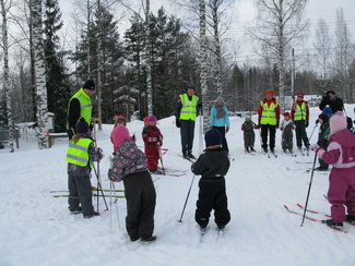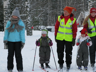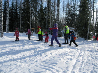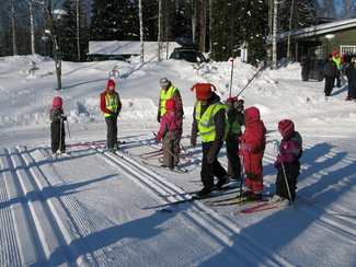 Muumihiihtokoulu pöyrähti taas käyntiin Lehtolan ulkoilumajalla. Yöllä oli satanut vähän lunta, mutta keli oli toki mainio pakkassäästä huolimatta. Oppiin oli imoittautunut 16 lasta, jotka olivat iältään 4-7 vuotta. Ohjaustoimissa häärivät tutut henkilöt aikaisemmilta vuosilta. Onneksi saimme myös muutaman tilapäisapulaisen, sillä tälläkertaa lapsista suuri osa oli niitä nuorempia. Ohessa kuvia ensimmäisen hiihtopäivän tapahtumista. Ohjelmassa oli tutustumisleikin jälkeen mm. kukkasten tekemistä, kaatumisharjoittelua, suksikaruselliä, hirvenhiihtoa, tasapainoharjoittelua, pesänryöstöä ym.