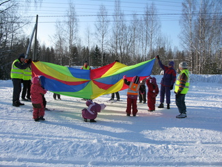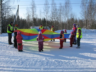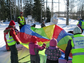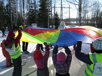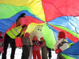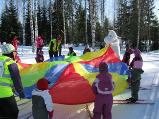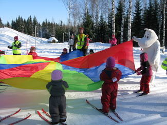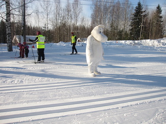 Sunnuntaina 20.02. oli hiihtokoulumme viimeinen koulupäivä. Moni odotteli sydän pamppaillen päivän päätähteä, Muumipeikkoa! Muumipeikko tulikin paikanpäälle katsomaan lasten suorituksia mäenlaskussa, tasamaahiihdossa ja leikeissä. Muumipeikko osallistui itsekin leikkeihimme sen verran, että lehytti lasten mukana leikkivarjoa. Kiitos kaikille mukanaolleille!