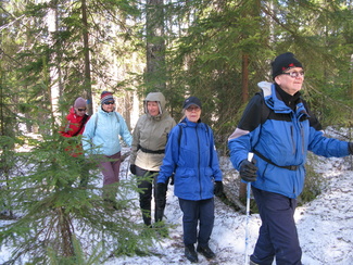 Viikonlopun aikana olemme päässeet nauttimaan keväisestä säästä. Aurinko helli myös meitä kahdeksaa retkeläistä, jotka sunnuntaipäivänä suunnistimme kulkumme Reijo Huuskosen johdolla Piilolammen maisemiin. Kiersimme lammen ympäri merkittyä polkua pitkin. Havainnoimme kevään edistymistä, ja nautimme kevään auringosta upealla näköalapaikalla Piilolammen pohjoispäässä. Paltessamme Piilolammelta poikkesimme myös katsastamaan tulvivaa Kytäjokea Jaanankallion P-paikan kohdalla. Paikaltahan saattaa havannoida pellolla muuttomatkallaan viivähtäviä muuttolintuja. Useina keväinä paikka houkuttelee mm joutsenia sekä hanhia. Tälläkertaa joella ui ainoastaan yksi joutsenpari.