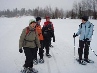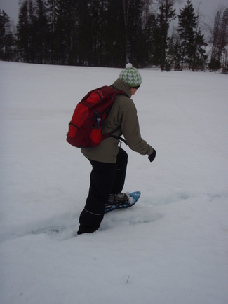 Hyvinkään Ladun retki Petkelsuolle suoritettiin tällä kertaa lumikengillä, sillä huhtikuun alkupuolen lumet riittivät vielä peittämään niin pellot kuin pientareetkin. Lämpötila oli jo aamu kahdeksalta plussan puolella eli tuo lumikenkä olikin latulaisen luonnollinen valinta etenemisvälineeksi. Edeltävän vuorokauden ajoittainen vesisade ei vielä ollut ennättänyt kastella lumipeitettä läpeensä, joten kantavuus todettiin Palstojentien varressa yllättävänkin hyväksi. Karvan harmaassa aamussa mukaan matkalle lähti seitsemän kenkäilijää. Tämä natsasi sangen hyvin reittisuunnitelman kanssa, kuljettiinhan osa matkasta Seitsemän Veljeksen merkittyä reittiä. Kuvat tallensi ja tekstin naputteli Lauri.