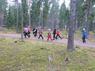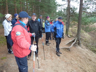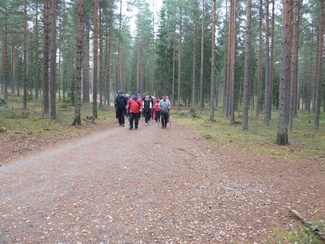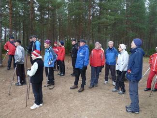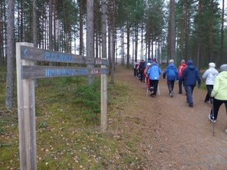 Tänä sunnuntaina käveltiin tuttuun tapaan Kalevin johdolla Nikinharjun lenkki. Lämpöä oli sellaiset seitsemän astetta, joka sai retkeläiset vähän aprikoimaan oikeaa varustusta. Kuivaa keliä oli jo useita päiviä takanapäin, joten reittimme polut havaittiin tällä kertaa helppokulkuisiksi.