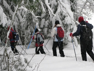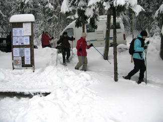 Ensimmäisenä ELÄMYSPASSI-tapahtumana lumikenkäiltiin Sipoonkorven kansallispuistossa Vantaan Ladun toimiessa isäntäyhdistyksenä. Tukikohtana tapahtumassa oli Vantaan Ladun Bisan ulkoilumaja. Lähdimme tapahtumaan Hyvinkäältä aamutuimaan seitsemän hengen voimin ja mukanamme 15 paria lumikenkiä. Hyvinkään Latu oli luvannut lainata tapahtumaan omia kenkiään. Ohessa Timo Tuomaisen matkalta näppäilemiä kuvia. Kuvaa näpäyttämällä saat sen näkyviin hiukan suurempana.