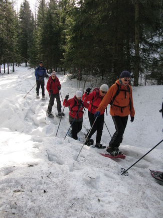 Lumikenkäretket ovat saaneet hyvän suosion talvisina tapahtumina. Ohessa kuvia Puolimatkan- Sonninmäen lumikenkäretkiltä 4.3. ja retkeltä Iso-Haiskarin lammelle 18.3. Kuvat Timo Tuomainen ja Timo Repo.