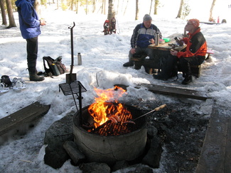 Vietimme reilun tauon nuotiopaikalla. Edellinen retkeilijä oli jättänyt mukavat tulet. Lisäsimme nuotioon muutaman mukanamme tuomamme klapin, jotta makkarat saivat hienon tumman värin, ja savuisen aromin.
