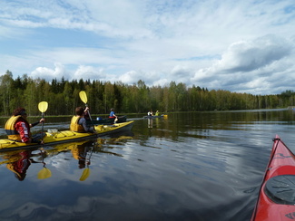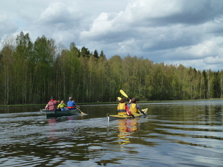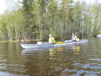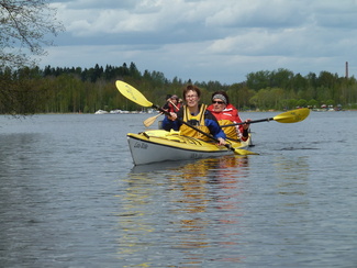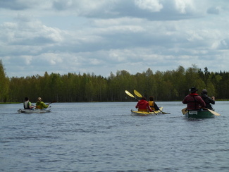 Kesäkauden toinen melontatapahtuma suunnattiin tällä kertaa Hiidenjoelle. Kokoontuminen oli tuttuun tapaan kello yhdeksältä Kalevin pihalla. Lastattuamme kanootit kyytiin, autoilimme Kalevin ja Kaarinan kyydeillä Kernaalajärven uimarannalle. Meloimme hienossa alkukesän auringonpaisteessa Turengin Suvirantaan ja takaisin. Matkaan saatiin tällä kertaa Kalevin inkkarin lisäksi Latu-Welho, Latu-Lempi sekä Laurin oma yksikkö. Kuvat ovat jälleen peräisin Laurin kamerasta.
