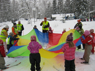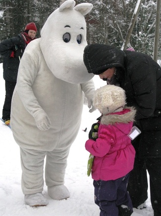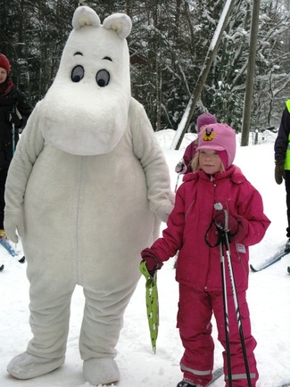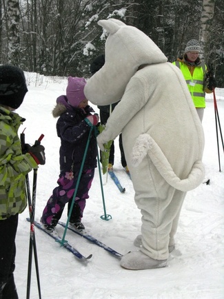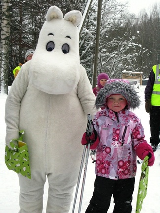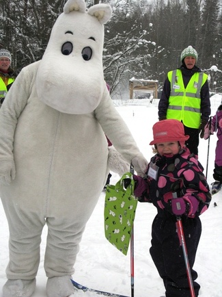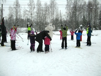 Meidän hiihtokoulussamme on nimikkohahmomme vieraillut jo useamman kerran. Myös tälläkertaa Muumipeikko tarkasti oppilaiden taidot. Muumipeikko myös osallistui lasten kanssa leikkeihin.
