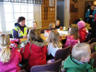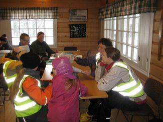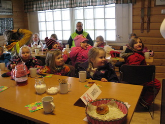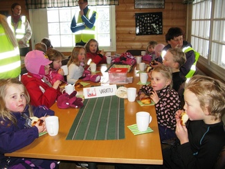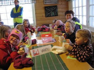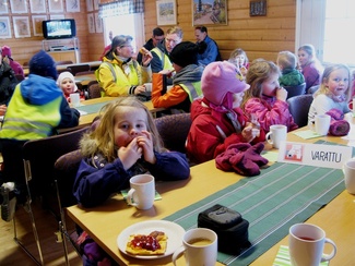 Lehtolan majan sisätiloissa päästään lämmittelemään ja nauttimaan mehusta ja pullasta.
