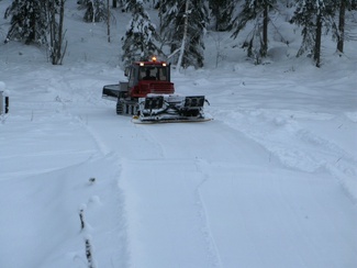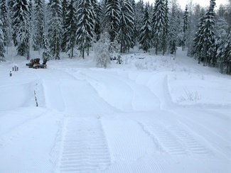Hiihtokoulua varten kaupungin latukone aurasi ja tamppasi Lehtolan hiihtomaan,