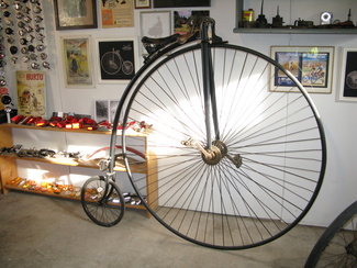 Tällaisella pyörällä taiteileminen ei olekkaan jokapojan harrastus. Suurella etupyörällä varustettu pyörä liikkuu toki rivakasti, mutta vaatii papua pohkeeseen. Välityshän tuossa on suora, eikä jarruttaminenkaan liene yksinkertaista. Mallin mukaisia pyöriä valmistetaan toki nykyaikanakin, vakka tämä yksilö on jo iäkäs.