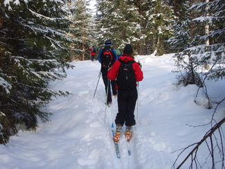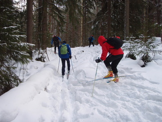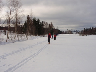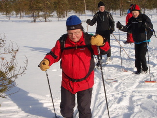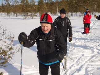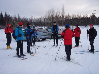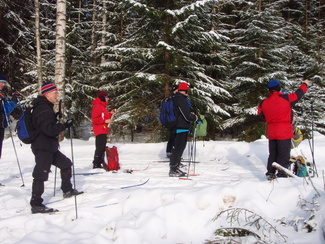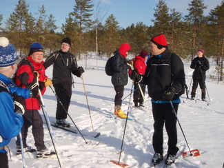 Hyvinkään Ladun perinteinen umpihankihiihto lykittiin tällä kertaa uudella reitillä. Kävimme tarkastamassa Petkelsuon talviset, jopa lapinoloiset maisemat kymmenen suksijan voimin. Matkalla nähtiin monenlaista kulkuvälinettä, josta silmiinpistävimmät olivat Karhun puusukset ja Veikon edellisenä päivänä kehittämät umpparisauvat. Matkaa lähdettiin jo kello 9 tutulta Hyyppäräntien parkkipaikalta ja takaisin palattiin monta talvista kokemusta rikkaampina reilut viisi tuntia myöhemmin. Kuvat ovat Minnan ja Laurin kameroista.