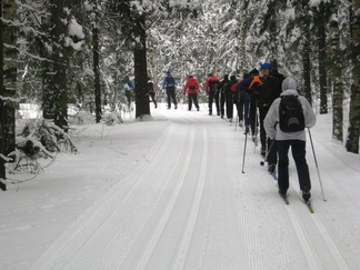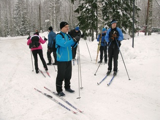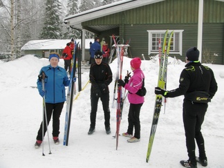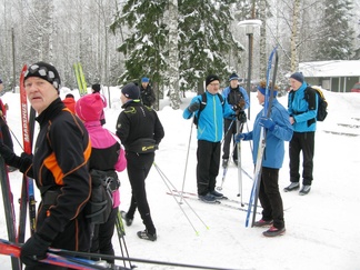 Hyvinkään ympärihiihto hiideltiin Lauri Huhdin vetämänä. Eikä Lauri tosiaankaan tarvinnut tälläkertaa lähteä yksin matkaan, sillä osallistujija oli tullut mukavasti retkelle. Järvenpään Ladun tehoryhmä vahvisti tuntuvasti taas omia joukkojamme. Hyvinkään ABC:ltä lähtenyt ja sinne päättynyt ympyräretki hiihdeltiin mukavassa talvisäässä. Lämpötila oli karvan verran miinuksen puolella. Kuvia näpsi Sulo Simonen ja Lehtolan ulkoilumajalla muumihiihtelyissä ollut Timo Tuomainen.