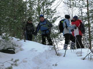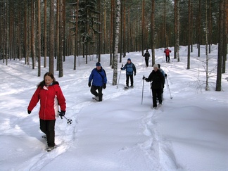 Mukavassa talvisäässä suuntasivat lumikenkäilijät isolla joukolla Sonninmäkeen maaliskuun ensimmäisenä sunnuntaina. Kuvia näpsi Timo Tuomainen
