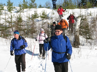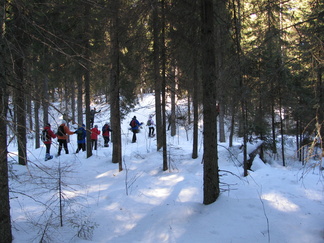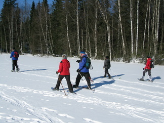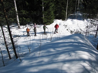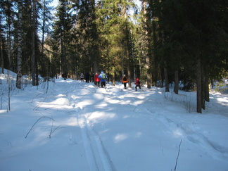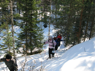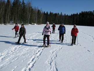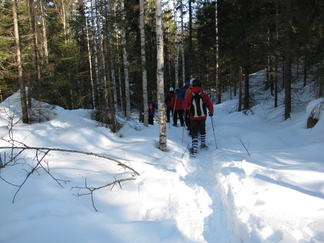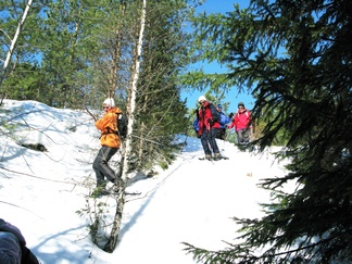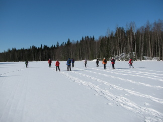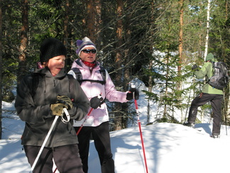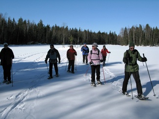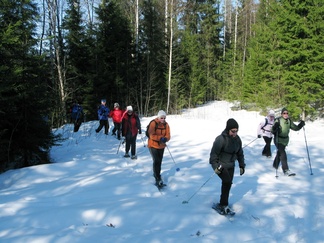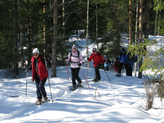 Aurinkoisena sunnuntaina läksimme lumikenkäilemään Iso-Haiskarin ympäristöön. Olosuhteet ulkoiluun olivat erinomaiset, kuten ovat olleet koko kevään. Lumikenkäilijöitäkin on riittänyt retkillämme runsaasti. Kuvat otti tälläkertaa Kalevi ja Timppa