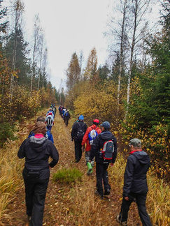 Syksyn perinteikäs patikkaretki, Miilunpatikka patikoitiin lokakuun toisena sunnuntaina 32 henkilön voimin. Reitti kierteli polkuja ja metsätaipaleita, kallioita sekä lampien rantoja. Vaikka matkaa ei kertynyt kymmentä kilometriä enempää, aikaa retkellä lului neljä tuntia. Reitin kääntöpaikalla, Kiiskilammella istuimme nuotiolla kahvia keitellen ja eväitä nauttien. Kuvia matkan varrelta näppäilivät Lauri ja Timo.