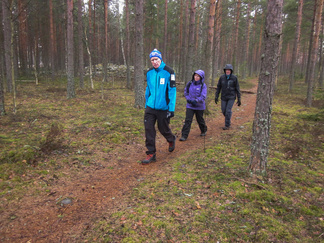 Kun talvikalenteria laaditaan, ei kevään keleistä ole varmaa tietoa. Siksipä kalenterissamme onkin ollut huhtikuun alkupuolella yllätystapahtuma. Lähdetään ulos tekemään sitä, mitä sää sallii. Tänä vuonna lumet olivat jo sulaneet, joten kävelylenkki oli paikallaan. Lauri johdatteli neljän ulkoilijan ryhmän Erkylän maastoihin. Kuvat näpsi Jukka Eloranta.