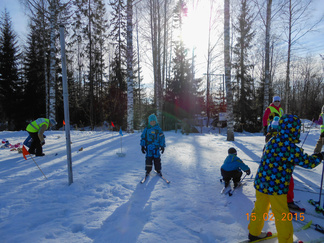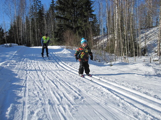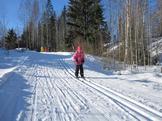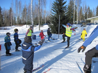 Lehtolan ulkoilumaja oli Hyvinkään Ladun järjestämän lasten hiihtokoulun tukikohtana jo ties monennenko kerran. Mukana hiihtokoulussa oli noin 12 hiihtotaitojen opiskelijaa, ja puolenkymmentä ohjaajaa. Järjestimme hiihtokoulun kaksipäiväisenä hiihtolomaviikon alussa. Oppilaat olivat pääasiassa alle kouluikäisiä. Vain muutama oppilaistamme oli oikeasti hiihtolomalainen, siis koulun hiihtoloman aloittanut. Leikimme suksileikkejä, harjoittelimme tasamaalla ja Lehtolan hiihtomaan rinteillä suksimiehen- ja naisen taitoja, sekä laskimme tietysti mäkeä. Mäenlaskun vauhdinhurma ja mäenlaskutaidon hallitseminen ovat hiihtämisessä lapsien omasta mielestä kaikista mieluisimpia asioita. Ohessa kuvia tapahtuman toiselta päivältä.