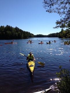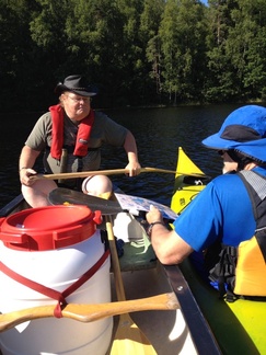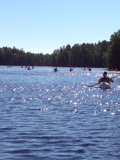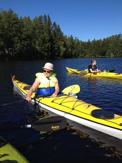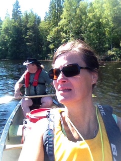 Sunnuntain 16.8. päivämelontaretki suuntautui Karkkilan länsipuolen pikkujärville. Ryhmämme kiersi 4 henkilön joukolla kolmella kanootilla ympyrälenkin 4 järven kautta. Pari vetotaivaltakin matkalle osui. Niiden ylityksissä kalusto kannettiin kannaksen yli seuraavaan järveen. Kuvissa näkyy enemmänkin kanootteja. Meidän ryhmämme lisäksi reittiä kiersi Hiidenveden Purjehtijoiden melontaporukka. Kuvat retkellä otti Pia Salo.
