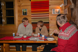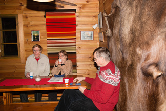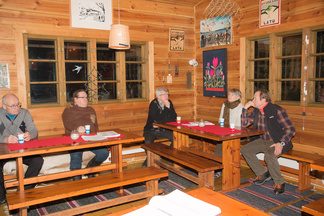 Pikkujoulua vietettiin Latu-Miilussa kymmennen hengen joukolla. Puuroa ja rusinasoppaa syötiin. Glögiä sekä kahvia nautittiin kera tähtitorttujen. Joululaulut raikuivat ja itse joulupukkikin pistäytyi. Reijon arvoituskisassa ratkottiin visaisia pulmia. Miten se olikaan mahdollista, etteivät kaksi täsmälleen samanikäistä ja samannäkoistä poikaa olleet kaksosia, vaikka pojilla oli jopa sama isä ja sama äiti? Kannattaa käväistä Hyvinkään Ladun pikkujoulussa, niin visaisiimpiinkin kysymyksiin löytyy sieltä vastaus! Kuvia näpsi Timppa