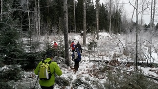 Oli kuurainen pakkaspäivä, pakkasta –8 ja kuuraa kertyi päivänmittaan enemmänkin, aurinko ei tosin näyttäytynyt. Oli siis melkein talvinen “kaamospäivä”. Joulustressin karkottajia oli lähtöpaikalla määräaikaan mennessä 6 henkeä, kaikki miespuolisia. Lieneekö “tyttärillä” ollut joulukiireitä, vai olivatko muuten vaan “stressittömiä”.