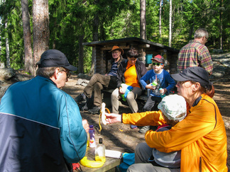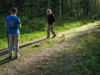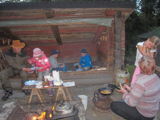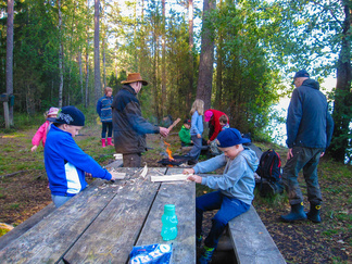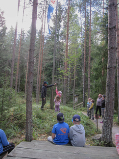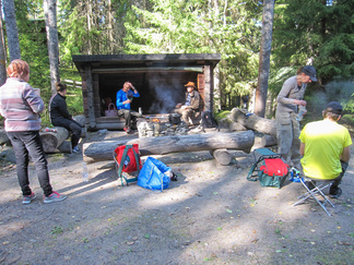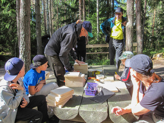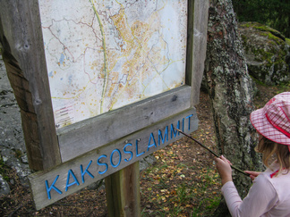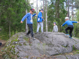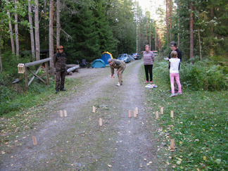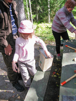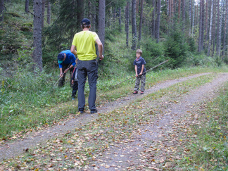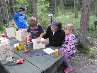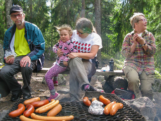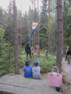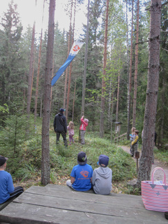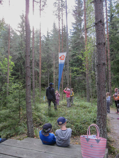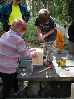Yhdessä lasten kanssa yönyli telttaretki tehtiin elokuun viimeisenä viikonloppuna. Lauantai-iltapäivällä joukkomme oli kokoontunut Latu-Miilun ulkoilumajalle ja pystyttänyt telttansa. Aluksi teimme joukolla linnunpönttöjä. Olihan Suomen Luonnonpäivä ja lisäksi Miljoona linnunpönttöä- teemapäivä. Retkeilimme Kaksoslammelle, jossa evästeltiin, tietenkin! Latu-Miiluun palattuamme heittelimme joukolla leppäkeihästä ja pelasimme mölkkyä. Lisäksi ohjelmassa oli kuvasuunnistusta. Ruokaa laitettiin retkikeittimillä ja syötiin kunnolla. Ruokailun jälkeen lenkkeilimme Tiikerinsuon ympäri. Matkalla temppuilimme nuoralla ja tunnistimme sieniä. Rauli-myrsky heilutteli kovasti puidenlatvoja, mutta onneksi puita ei kaatunut. Illan jo hämärtyessä paistelimme yhdesä lettuja. Letunsyönnin jälkeen alkoi olla nukkumaan menon aika, joten kömmimme makuupusseihimme. Kuulimme ilotulitusrakettien paukahduksia. Lienevätkö mökkiläiset Suolijärven suunnassa ilotulittaneet Venetsialais-illan vuoksi? Aurinkoiseen aamuun herättyämme nautimme aamupuuroa. Retkeilimme vielä yhdessä Iso-Kypärälammelle, jossa teimme tulet nuotiopaikalle. Eväitä oli tuollakin retkellä mukana, mutta myös polunvarren puolukat ja mustikat tekivät kauppansa. Palattuamme Latu-Miiluun oli vielä vuorossa kuvasuunnistuksen palkintojen jako, leirin purku ja leirilipun laskeminen. Sunnuntaina puoliltapäivin leirimme oli ohitse. Kiitos mukanaolleille.