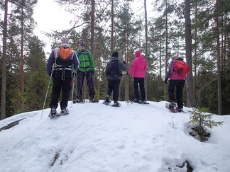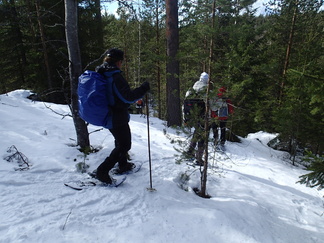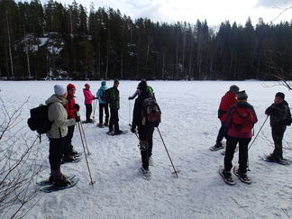 Lumikenkäretki käveltiin tällä kertaa Petterin johdolla ja 14 retkeläisin voimin. Kuvat ovat Laurin kamerasta.