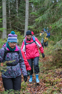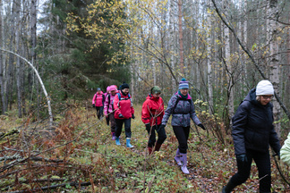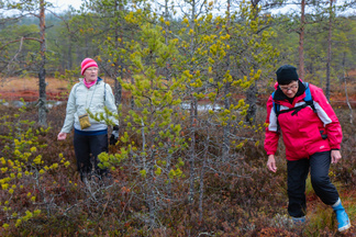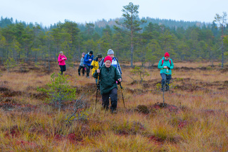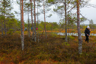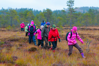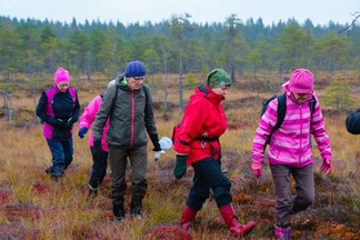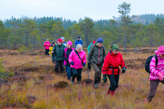 Ikinivel retki Petkelsuolle keräsi 18 hengen osallistujajoukon. Lokakuinen lauantaiaamupäivä ruskan värjäämällä suolla helli monen retkelle lähteneen kaukokaipuuta syksisen Lapin tunnelmiin.