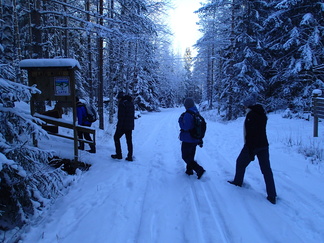 Sukkaloitiin patikoiden Hyyppärän infitaulun P-paikalta 6 hengen voimin. Sää oli yllättäen 5 astetta lämpimämpi, (n. –10) mitä oli luvattu ja tuulikin oli olematonta. Aurinko paistoi koko retken ajan, joten oli oikein hieno retkisää.