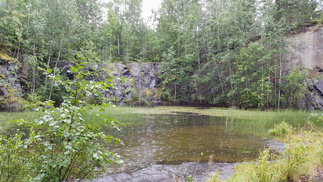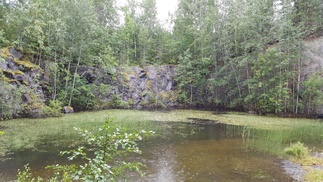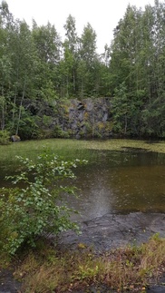 Oikaisimme metsän läpi louhoksilta Aarinnansuon etelä päähän ja siitä ulkoilureittiä Karhulammelle, siellä on vielä Hankolaisen Granit oy n entinen louhos mistä selvimmin saa kuvan entisestä louhintatoiminnasta.