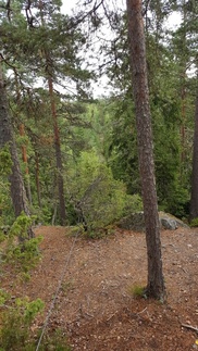 Kiertelimme vanhoja sammaloituneita kivikasoja pieniä polkuja seuraillen. Pohjois- / koillispään louhoksien ympäriltä on aikanaan kaadettu metsää pois ja nyt se kasvaa varsinaista viidakkoa, on lehtipuuta, saniaista ja ruohikkoa. Tuli ihan ”Indiana Jones ja turmion temppeli” mieleen kolutessa vesaikon keskellä kivikasojen lomassa.