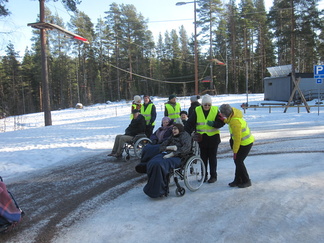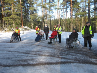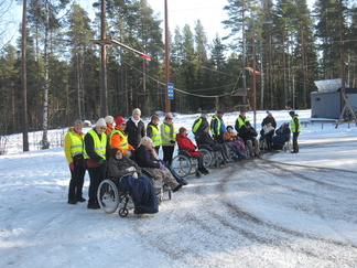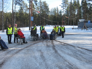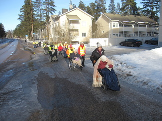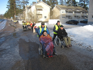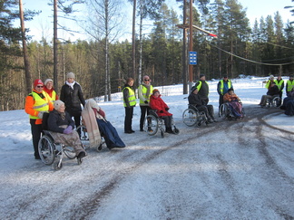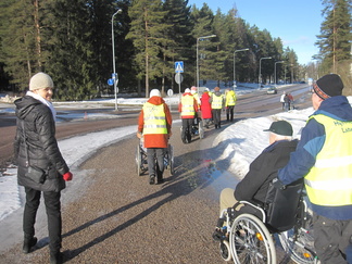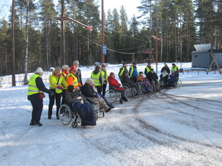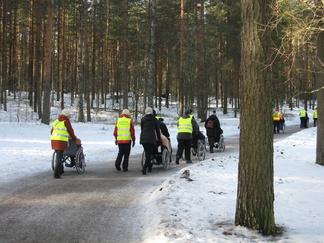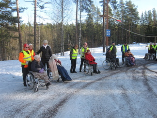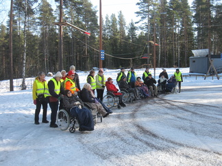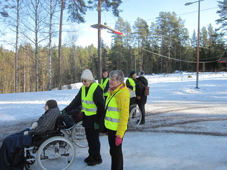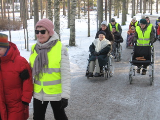 Ikiliikkujat tapahtumassa Veteraanitalolla oli mukana 9 talon asukasta ja 14 vapaaehtoista ulkoilukaveria. Vaikka onkin vasta helmikuun puoliväli säätila oli kovin keväisen oloinen. Kävimme yhdessä Härkävehmaassa ja poikkesimme aina Sveitsin Majan pihapiirissä asti.