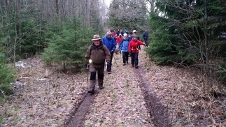 Metsään mentiin, Pirkko aikanaan sanoi että ”Kalevin kanssa kun lähtee matkaan niin aina päätyy metsään”, niin nytkin. Vauhtia tosin otettiin Hyyppäräntien hevostallien P-paikalta alkumatka liukastellen yön pakkasten liukastamaa ulkoilutietä. Oli yllättäen kuivahko pilvipoutainen sää sadepäivien ja yön pikkupakkasten jälkeen. Matkaan meitä lähti 18 henkeä, miehiä ja naisia, yksi ”alaikäinenkin” joukossa.