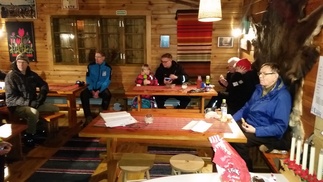 Majalla söimme pikkujouluista säästyneitä pipareita ja nautimme kahvia ja kaakaota sekä itse kukin omia eväitään. Kahvinkeitin hieman temppuili joten taukokin venyi, mutta matkaan pääsimme tauon jälkeen.