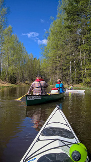 Tauon jälkeen melasimme vielä Mommilanjärvelle ja kävimme koukkauksen Teuronjoellakin. Siellä tuli vesijetti aika haipakkaa vastaan, vaan kyllä se äkkiä pysähtyikin. Kukin liikkuu tavallaan, meloessa sentään kuulee jotain muutakin kuin moottorin jylinää.