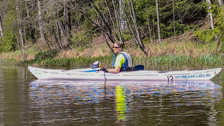 Kanootit kärrystä rantaan ja tavarat kyytiin, siitä suuntasimme ylös Puujokea Ansiojärven yli jolloin joki muuttui Haminanjoeksi ennen Mommilanjärveä. Rantauduimme Mommilanjärven soutustadionin rantaan ja suuntasimme eväinemme ja polttopuukassimme kanssa kohti grillikatosta. Grilliin tulet ja pääsi Tuulakin viimein nokeamaan edelliseltä reissulta säästämänsä makkarat. Löytyi niitä muiltakin, ja muutakin evästä löytyi, kanootissa kulkee, on joku joskus sanonut.