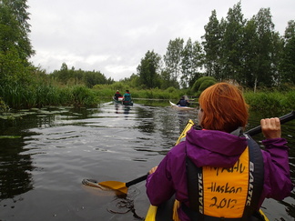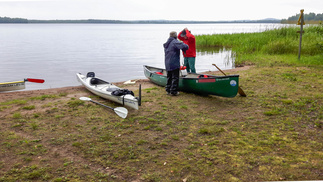 ”Suuri säätieteilijä” Kari Tapio oli taas kerran oikeassa, ”Myrskyn jälkeen tulee poutasää…… ”. Edellisen yön myrskyn jälkeen lähdimme suunnitellusti melontaretkelle. Alun perin ilmoittautuneita oli 10, lauantai-illan mittaan rupesi kännykkä viestittelemään. Ilmoittautuneilta tuli 4 peruutusta, onneksi Lauri ilmoittautui vielä mukaan, joten melojia kertyi yhteensä 7, 3 naista ja 4 mieshenkilöä. ”Kanoottiparkkiin” meitä kerääntyi aamulla viisi. Matti kanootteineen ja autoineen noukittiin mukaan Riihimäen ABC:ltä. Ari oli katsonut lähtöajan väärin, mutta tavoitti meidät taukopaikalta, sopivasti makkaratulilta.
