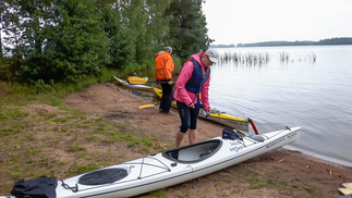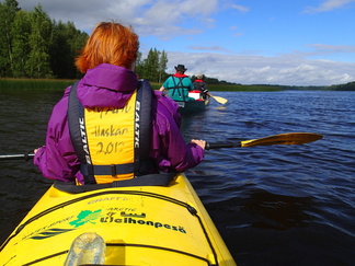 Reitti oli valittu luvatun lounatuulen vuoksi, olisimme hyvin rannan suojassa mennen tullen. Mutta kelihän oli mitä parhain. Ainoastaan lähtörannassa yritti hieman tihuuttaa, mutta lopetti hetimiten, Viralanjärvelle tullessa oli järvi hieman ”rypyssä”, muuten erinomainen melontasää. Kalustona meillä oli 1 x C2 (avokanootti), 1 x K2 kajakki ja 3 x K1 kajakkia.