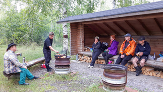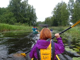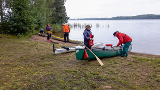 ”Suuri säätieteilijä” Kari Tapio oli taas kerran oikeassa, ”Myrskyn jälkeen tulee poutasää…… ”. Edellisen yön myrskyn jälkeen lähdimme suunnitellusti melontaretkelle. Alun perin ilmoittautuneita oli 10, lauantai-illan mittaan rupesi kännykkä viestittelemään. Ilmoittautuneilta tuli 4 peruutusta, onneksi Lauri ilmoittautui vielä mukaan, joten melojia kertyi yhteensä 7, 3 naista ja 4 mieshenkilöä. ”Kanoottiparkkiin” meitä kerääntyi aamulla viisi. Matti kanootteineen ja autoineen noukittiin mukaan Riihimäen ABC:ltä. Ari oli katsonut lähtöajan väärin, mutta tavoitti meidät taukopaikalta, sopivasti makkaratulilta.