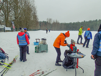 Suomen Ladun teemapäivänä Sukella Talveen oli Hyvinkään Latu järjestänyt Perttulan kentän laidalle info- ja mehupisteen kello kymmenestä kolmeentoista. Suksijoita Perttulan kentän lumetetulla latu-uralla oli lauantain aamuna melko mukavasta ja aika moni heistä onnistuttiin houkuttelemaan pysähtymään pisteellämme. Aika moni valitteli, ettei ollut varannut kolikoita mukaansa päivän jotokselle, mutta ilahtui sitten kuullessan, että Latu tarjosi tällä kerta mehut pysähtyjille. Olimme toki varautuneen isomman joukonkin huoltamiseen, sen verran paljon tuota mehua kannuun vielä poistuessamme jäi, mutta hyvä näinkin. Kuvat tallentuivat Laurin kameraan.